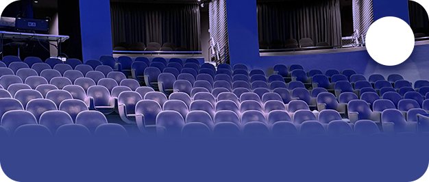 鏡框式中劇場,共776個座位(含8席輪椅席)。猶如懸浮的星球停靠於方形量體上。觀眾在球體內外隔間穿梭,往劇場方向前進。在觀眾席內,內殼與方形量體交界形成的獨特鏡框形式,創造了對鏡框可能性的無限想像。藍盒子